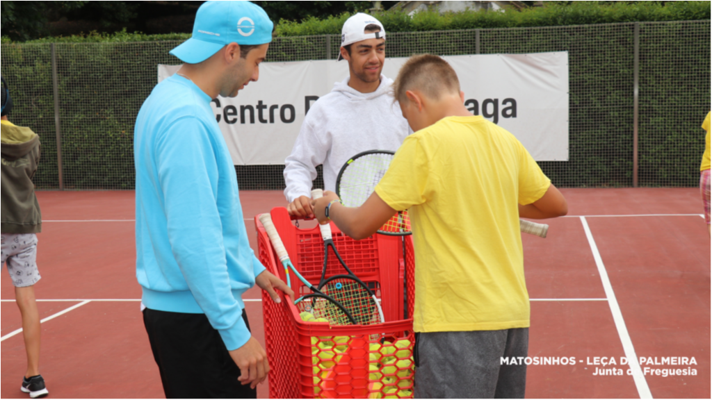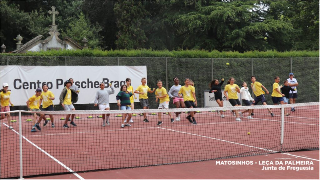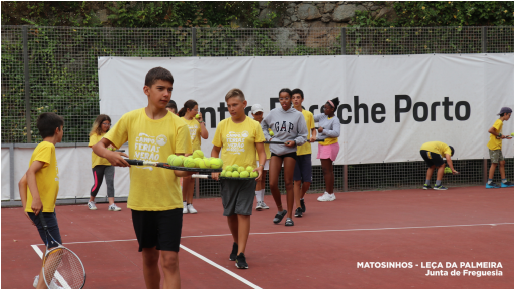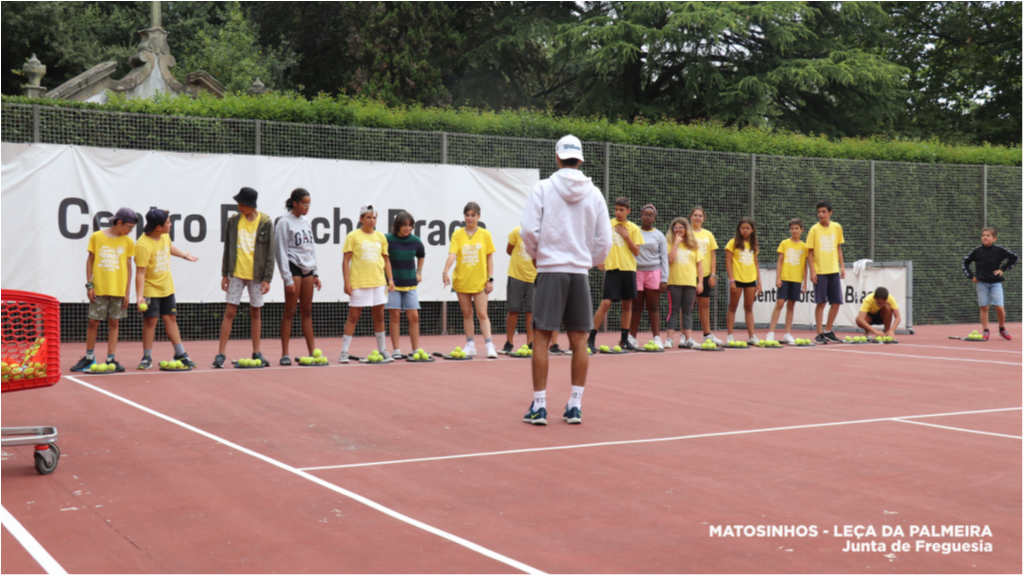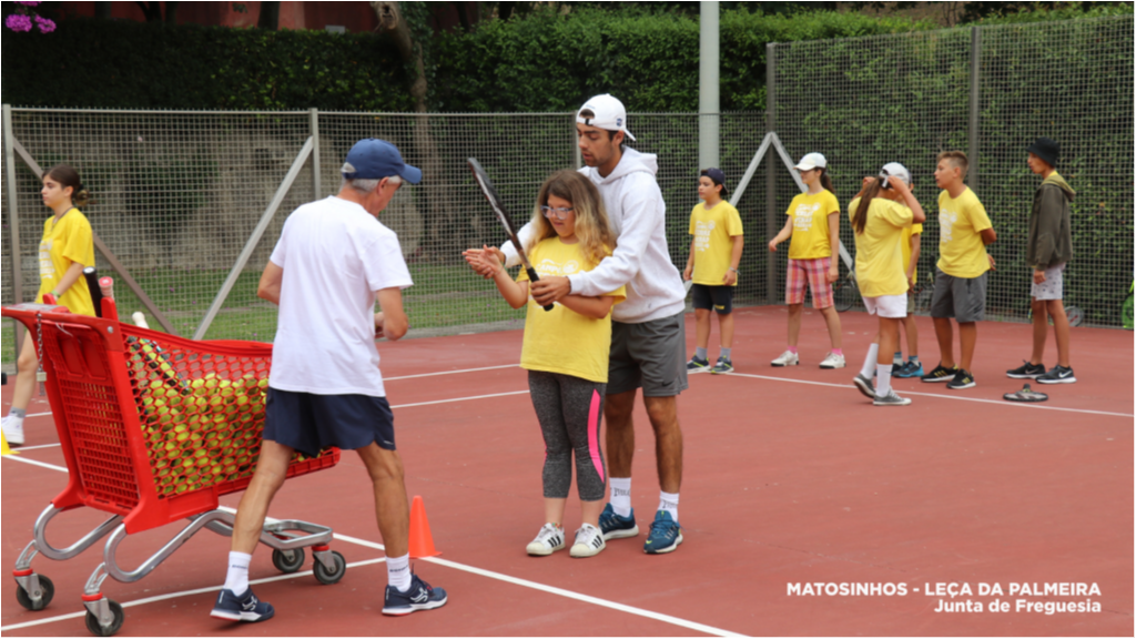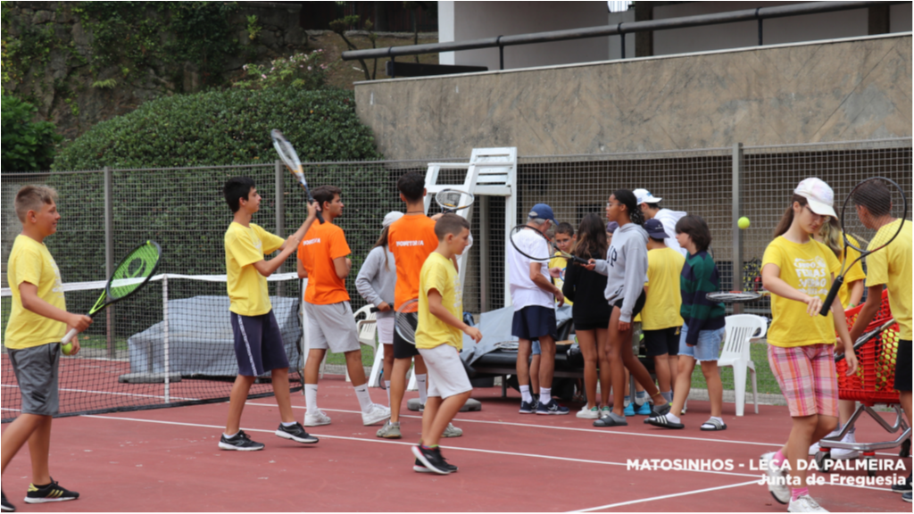 Os/as participantes do Campo de Férias de Verão da Junta de Freguesia de Matosinhos e Leça da Palmeira disfrutaram, esta manhã, de uma aula de ténis na Escola de Ténis da Quinta da Conceição.