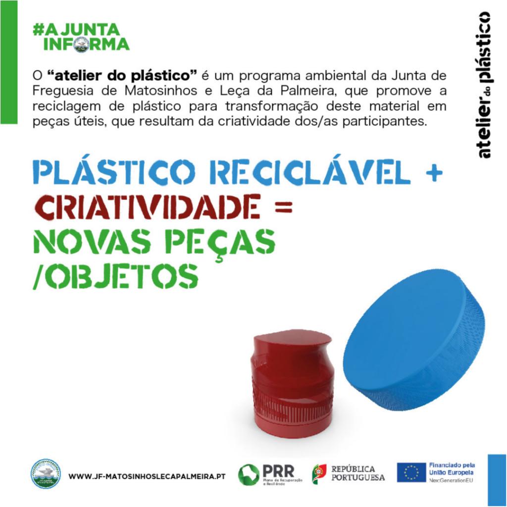 O Atelier do Plástico é O “atelier do plástico” é um programa ambiental da Junta de Freguesia de Matosinhos e Leça da Palmeira, que promove a reciclagem de plástico para transformação deste material em peças úteis, que resultam da criatividade dos/as participantes.