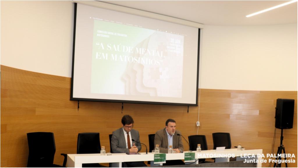Paulo Ramos de Carvalho, Presidente da Junta de Freguesia de Matosinhos e Leça da Palmeira e Carlos Mouta, Vice-Presidente da Câmara Municipal de Matosinhos, deram o mote para o arranque deste Encontro Temático, salientando a importância da prevenção, acesso e promoção da Saúde Mental – “Os programas de promoção e prevenção da saúde mental requerem uma abordagem multissetorial que envolve serviços de saúde e sociais, media, escolas e comunidade. Há ainda um longo caminho a percorrer para que o estigma sobre a saúde mental desapareça e para que todos os/as munícipes tenham acesso ao melhor atendimento e à melhor intervenção.”, ressaltou Paulo Ramos de Carvalho.